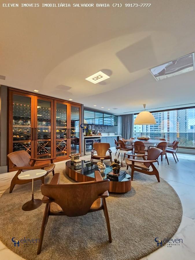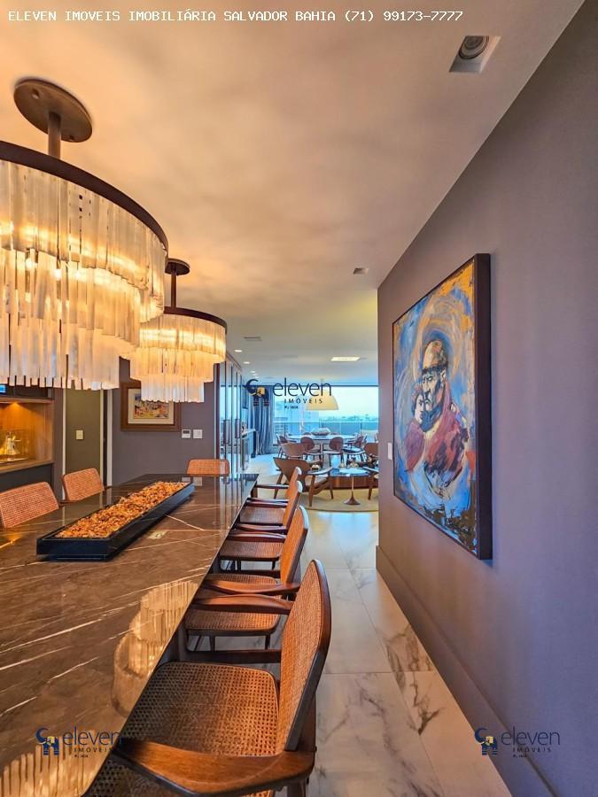 Apartamento na Mansão Bahiano de Tênis com planta original de 4 suítes master com closet, varanda incorporada , são 305m2 de área privativa de altíssimo padrão, finamente decorado e porteira fechada, living com home e sala de estar espaçosos com varanda incorporada, projeto assinado por Flavio Moura, armários nos cômodos da Bontempo, lavabo, cozinha com varanda gourmet integrada, despensa, todas as portas cinex, ar condicionado central Ar Temp na casa toda inclusive na cozinha e copa, todos os móveis assinados na Home Design de Sergio Rodrigues e Jader Almeida, automação residencial, Adega Arte Decaves, projetor na sala, cervejeira e adega eletromec na sala e electrolux na copa, bancadas da casa toda da Pavimenti cozinha e banheiros Super Nanoglass e a bancada do lavabo mármore italiano, piso todo apto Porcelanato comprado na Pavimenti da Rocca, área de serviço, dependência de empregada completa, 4 vagas de garagem e depósito.